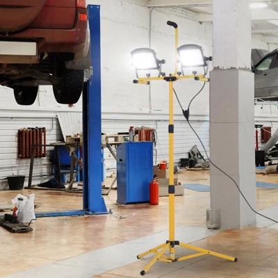 HOMCOM 10,000 Lumen Dual Head LED Work Lights Weather Resistant With Telescoping Adjustable Tripod Stand, Rotating Lamps