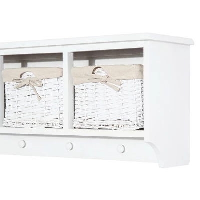 HomCom 32" Rustic Floating Shelf With Coat Hooks And Baskets - Antique White -Homcom GUEST 7d8bb63f b719 4e10 997f afbd6ec1736e