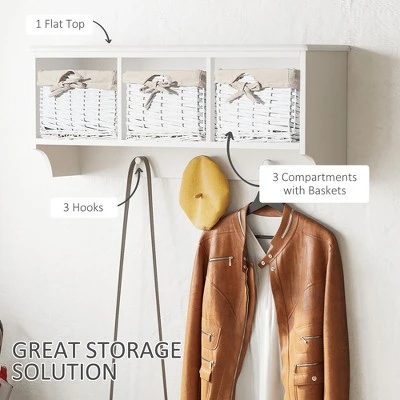 HomCom 32" Rustic Floating Shelf With Coat Hooks And Baskets - Antique White -Homcom GUEST 292dbb19 6b29 4003 b2f4 7ea3ef053182