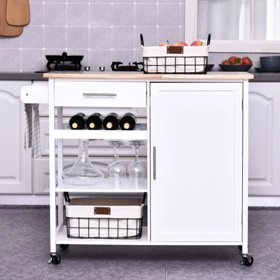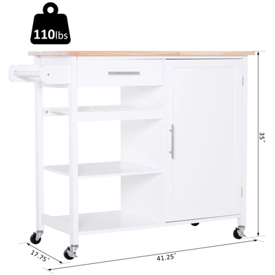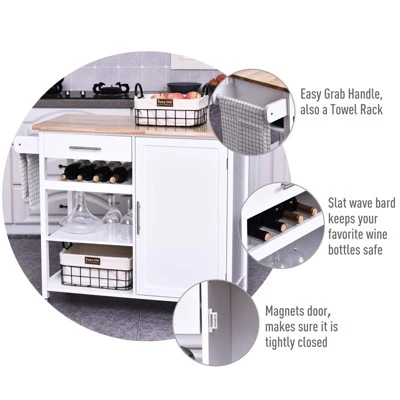 HOMCOM 4-Tier Rolling Kitchen Island Utility Trolley Serving Cart Kitchen Storage Cart W/ Butcher Block Countertop, Drawer