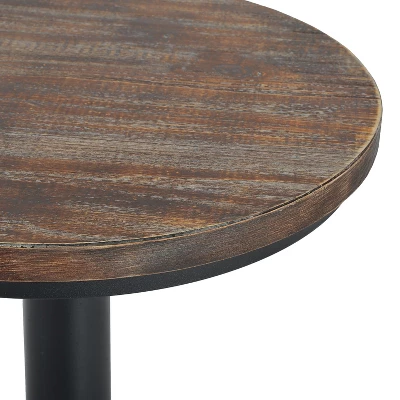 - WEATHERED WOOD TOP: The round bar dining table is a beautiful pinewood that has been treated to look antique and weathered with dark woodgrain, medium woodgrain, and streaks of sanded white woodgrain.
