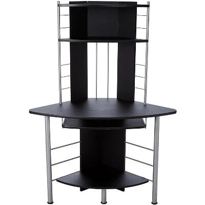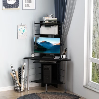 HOMCOM 62″ Arch Corner Computer Desk With Printer Hutch And Storage Shelf