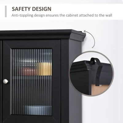 HOMCOM 71″ Traditional Freestanding Kitchen Buffet With Hutch, Pantry Cabinet With 4 Doors, 3-Level Adjustable Shelves, And 1 Drawer, Black