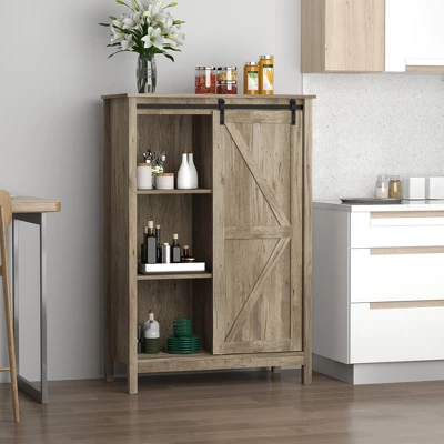 - Farmhouse Style: Featuring a unique sliding barn door and vintage color finish, the buffet cabinet provides purpose and style with decorative charm to your home decor.