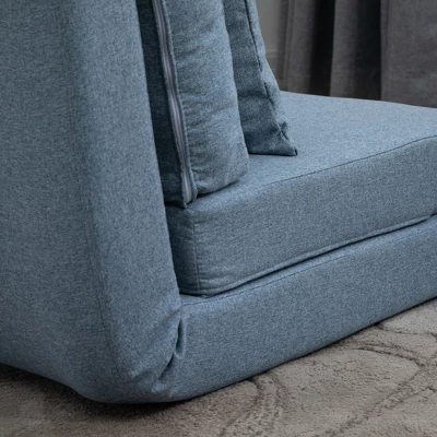 HOMCOM Convertible Flip Chair, Floor Lazy Sofa, Folding Upholstered Couch Bed With Adjustable Backrest, Metal Frame And Pillows For Living Room, Blue
