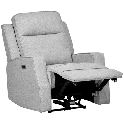 HOMCOM Electric Power Recliner Armchair With USB Charging Station, Sofa Recliner With Linen Upholstered Seat And Retractable Footrest, Gray