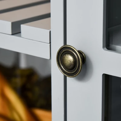 - Glass Door: This kitchen island on wheels has a framed glass door bringing elegance to your house, allowing you to easily find items and keep out the dust. An adjustable shelf is behind the door for a flexible storage solution.