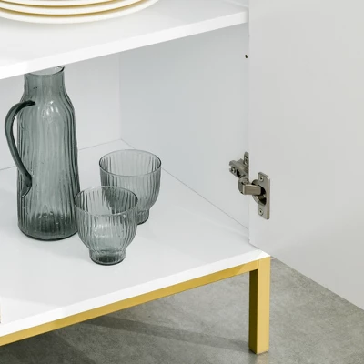 Creating a stylish storage option has never been so easy! This modern sideboard from HOMCOM fits nicely with any decor and can be used in the kitchen, dining room, or living room to create stylish additional storage. The sideboard hutch comes with ample storage space for daily accessories, utensils, dry goods, as well as plates and dishes. This compact cabinet with a rustic chevron pattern and luxurious gold legs will accent your house with timeless elegance. Take your living space to the next level with HOMCOM’s pantry cabinet and take the hassle out of storage.