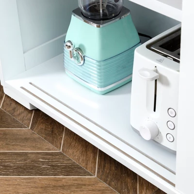 - Easy Access: The glass cabinet with storage has a sliding door that you can push to either side so you can grab what you need from the right or left.