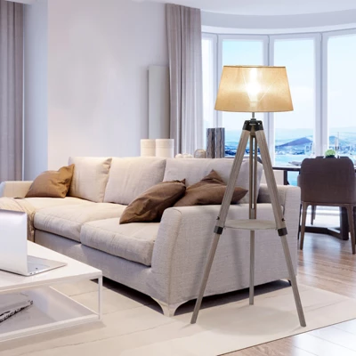 HOMCOM Multifunctional Floor Lamp With Shelf Height Adjustable Standing Lamp, Wood, And Beige