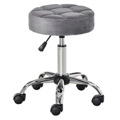 HOMCOM Round Vanity Stool With Height Adjustable Lift, Luxury Style Upholstery And Swivel Seat And Wheels