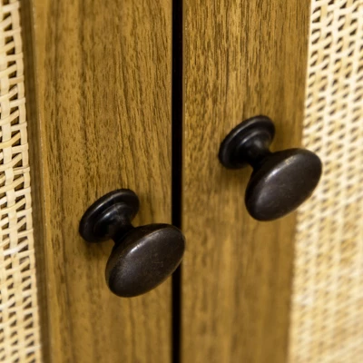 - Rattan Element: This wooden bookshelf features handcrafted rattan on the cabinet door for rustic charm that brings a texture to blend with the colors and patterns in the room.