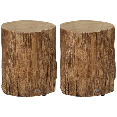 HOMCOM Side Table With Round Tabletop, Tree Stump Shape Concrete End Table With Wood Grain Finish, For Indoors And Outdoors, Set Of 2, Natural