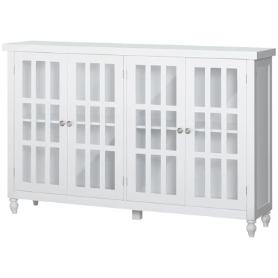 Quickly add that needed storage and get kitchen supplies clutter-free with this HOMCOM kitchen buffet cabinet. Framed tempered glass makes this sideboard buffet stylish and keeps the item without dust. The sideboard with two storage cabinets and a tabletop provides a versatile storage solution. Customize your home space with the interior adjustable shelves that move to fit your needs. This HOMCOM buffet sideboard will create a classic feel and grace your house.