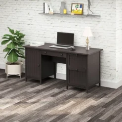 HOMCOM Vintage Executive Computer Desk, Home Office Work Station, Student Table With Cabinet & 3 Drawers For Hanging Files