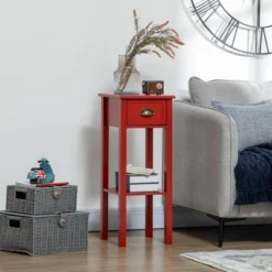 HOMCOM 22” Traditional Wood Accent End Table With Storage Drawer For Living Room Or Bedroom