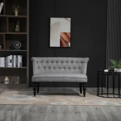 HOMCOM Upholstered Armless Fabric Loveseat With Button Tufted Design For Living Room With Wood Legs