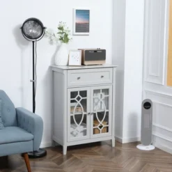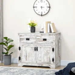 HOMCOM Rustic Storage Cabinet Sideboard With 2 Drawers And 2 Cupboard, Distressed White
